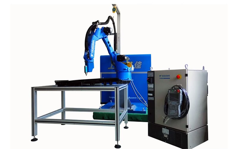 Robot perekat dengan sistem dispensing enam sumbu ini secara luas digunakan dalam aplikasi dispensing tiga dimensi untuk komponen otomotif, produk penyimpanan energi, perangkat elektronik, dan sebagainya.